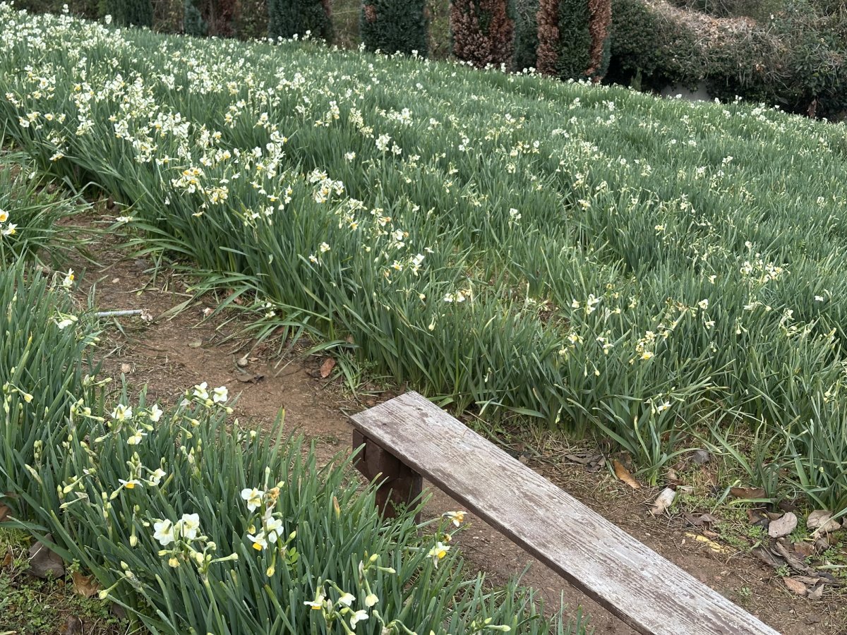 「日本水仙花開道」の「日本水仙」は、所有者のご厚意で一般に開放されています。花の少ない季節に、こうして誰もが気軽に美しい景色を楽しめることに、心から感謝いたします。