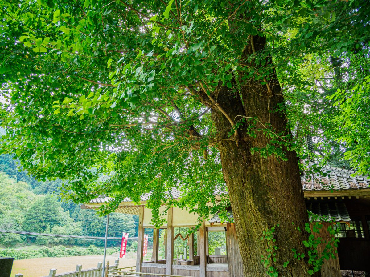 また、境内にはムクの木のほかにも、幹回り約3メートル31センチのイチョウの木があり、こちらも目を引く存在です。秋には黄色く色づく葉が境内を鮮やかに彩り、季節の移ろいを知らせてくれます。
