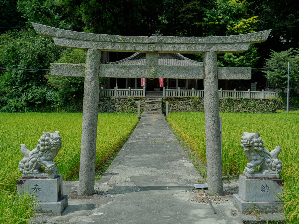 周囲の自然と見事に調和しながらも、ひときわ目立つその存在は、古くからこの地に根付く信仰の象徴であり、訪れる人々に安らぎと敬意の念を呼び起こします。日々の喧騒から離れ、静けさに包まれたこの神社を訪れると、自然と心が落ち着き、地域の歴史や文化に思いを馳せることができます。