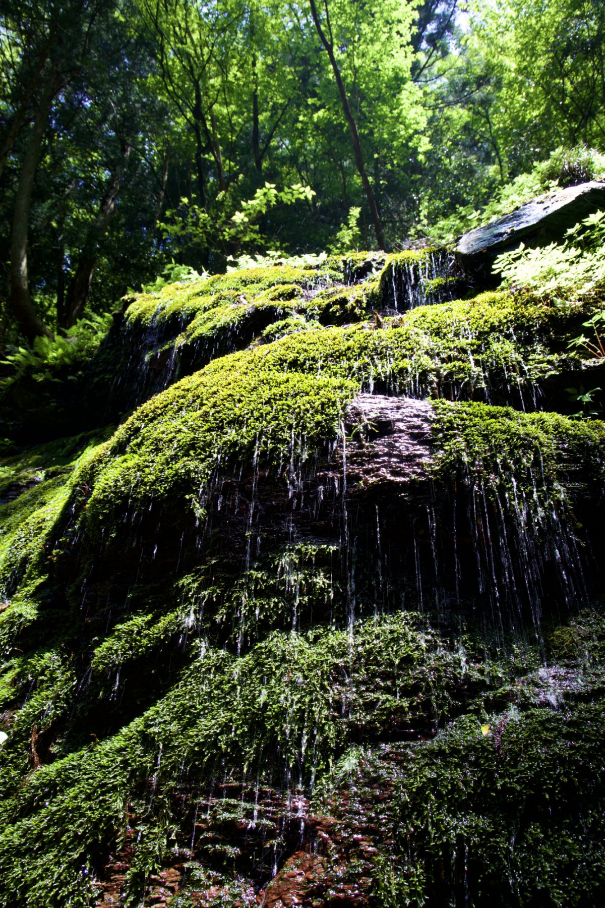 愛媛県四国中央市の赤星山(あかぼしやま)にある玉簾滝は、苔むした岩肌を玉のように水が滴り落ちるとても珍しい滝です。清らかな水がサラサラ落ちるのを見ているだけで、心がすーっと落ち着きます。