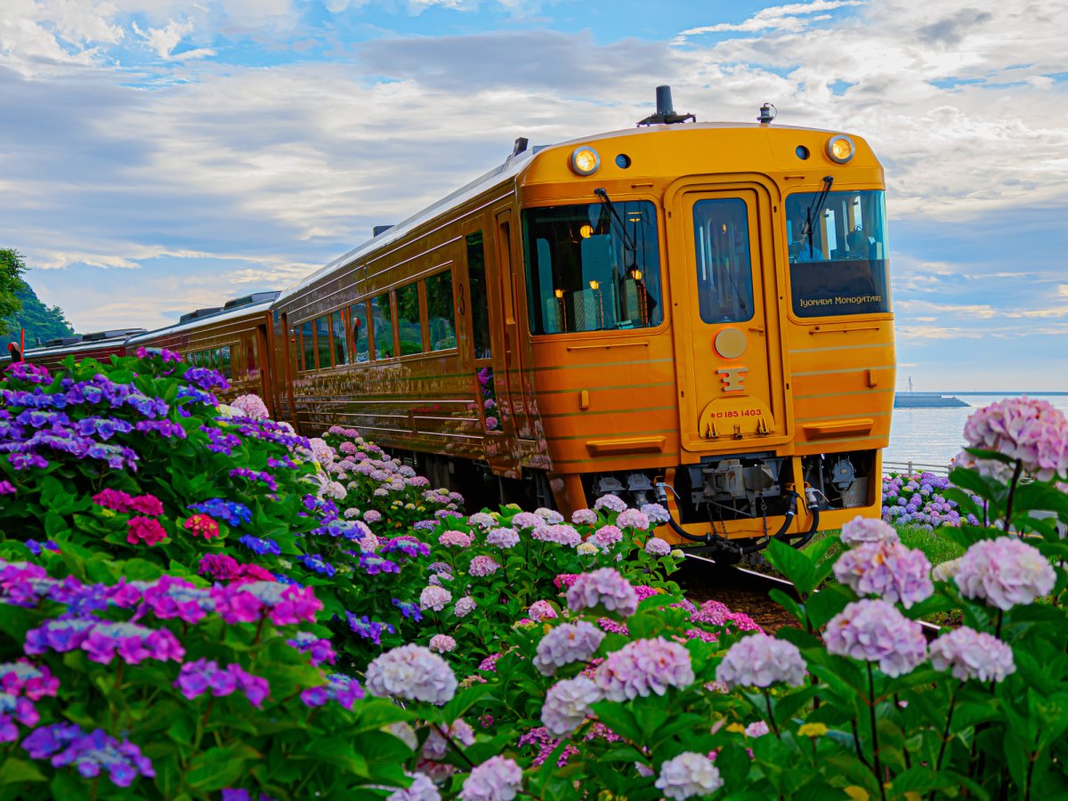 伊予灘ものがたりに乗れば、美しい海だけではなく、四季折々の美しい花もまた魅力の一つ。