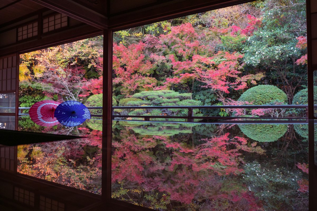 期間限定で一般開放される長健寺の”池の間”。窓枠の向こうに広がる庭園に心を打たれます。
