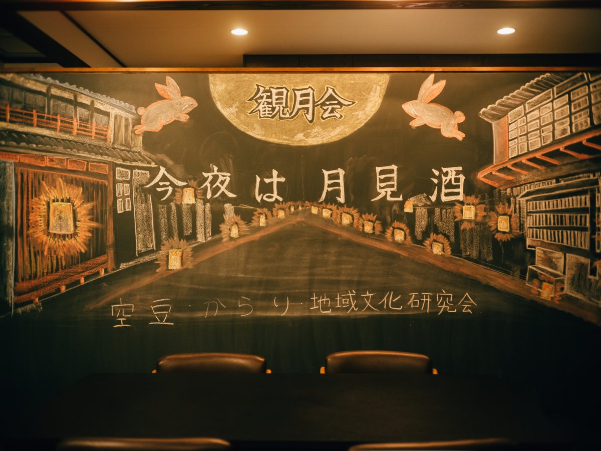 また、今回は内子町の地域の方々や愛媛大学の地域文化研究会、関東から移住体験で来ていた大学生たちなどが共同で、月見酒と題してこの2日間限定のお店を開いていたので遊びに行ってきました。