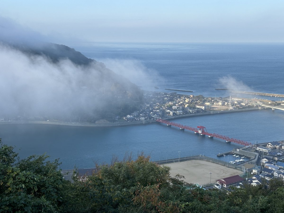 「肱川あらし」とは、大洲盆地で発生した霧が、肱川の流れに乗って一気に海へと流れ出す自然現象。風と霧が織りなす光景はまさに圧巻で、長浜の冬を象徴する絶景です。 発生条件は非常に繊細で、