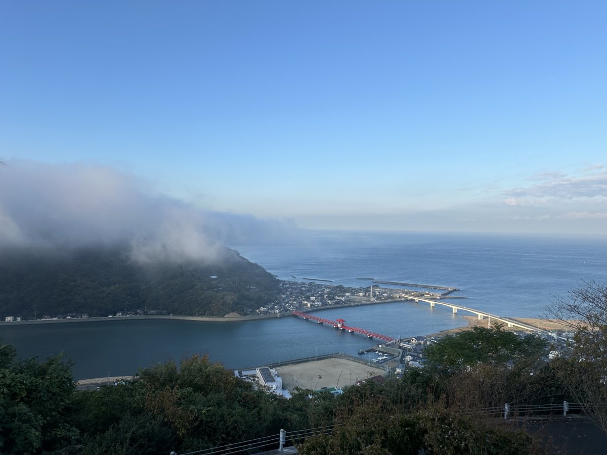 朝日に照らされる赤橋を背景に、「肱川あらし」が流れる瞬間はまさに“奇跡と歴史の共演”。カメラ片手に訪れたい、長浜屈指のフォトスポットです。