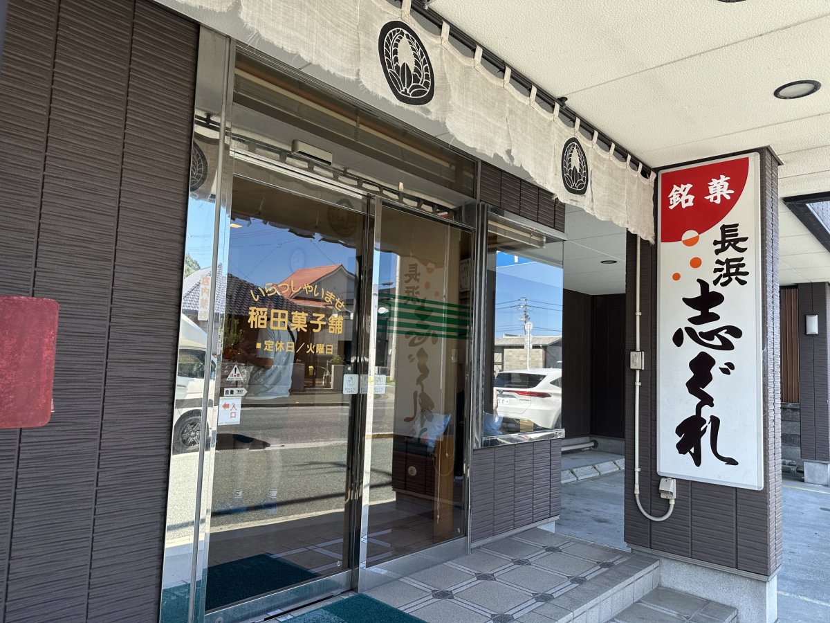 JR長浜駅近くにある「米田菓子舗」は、しっとりとした口あたりが印象的な「志ぐれ」が評判のお店です。ひと口いただくと、もちっとした弾力の中にやわらかな口どけがあり、甘さはとても上品。舌の上で静かに溶けていくような軽やかさに、思わず笑みがこぼれました。