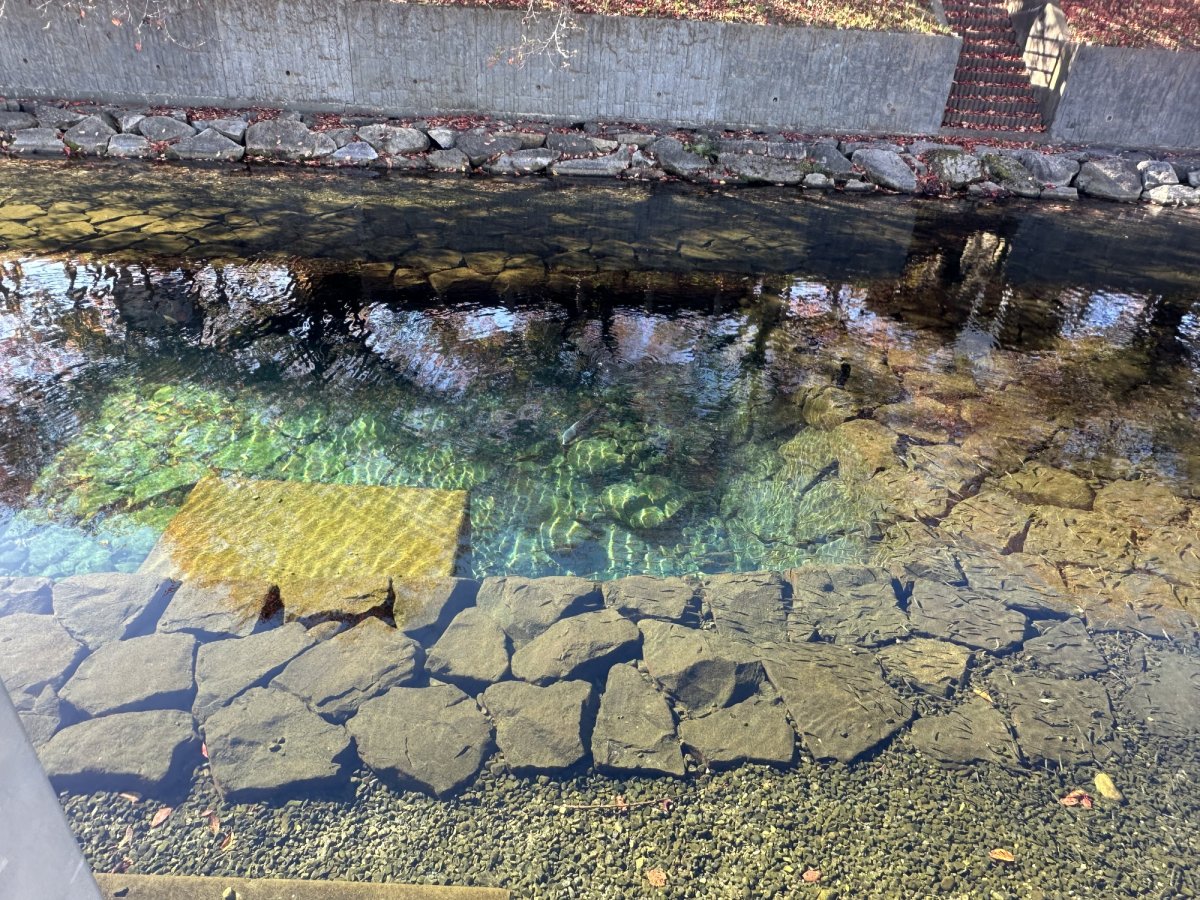 幅約10メートル・長さ約520メートルの流式泉は透明度が高く、晴れた日は翡翠色の水面が美しく、散策にぴったりの静かな環境が整っています。 遊歩道にはベンチが点在し、桜の季節には“桜をゆったり眺めるスポット”として人気です。