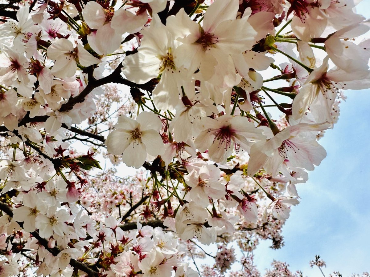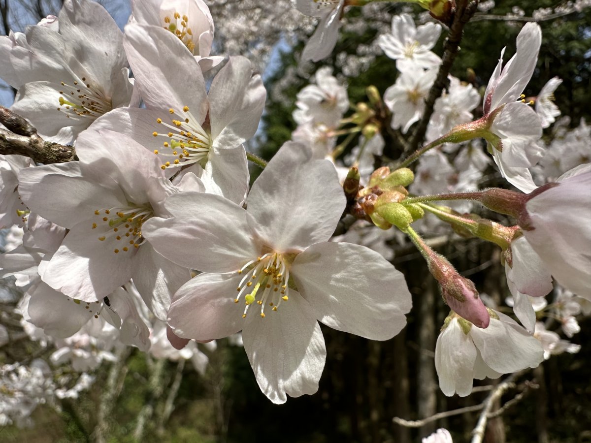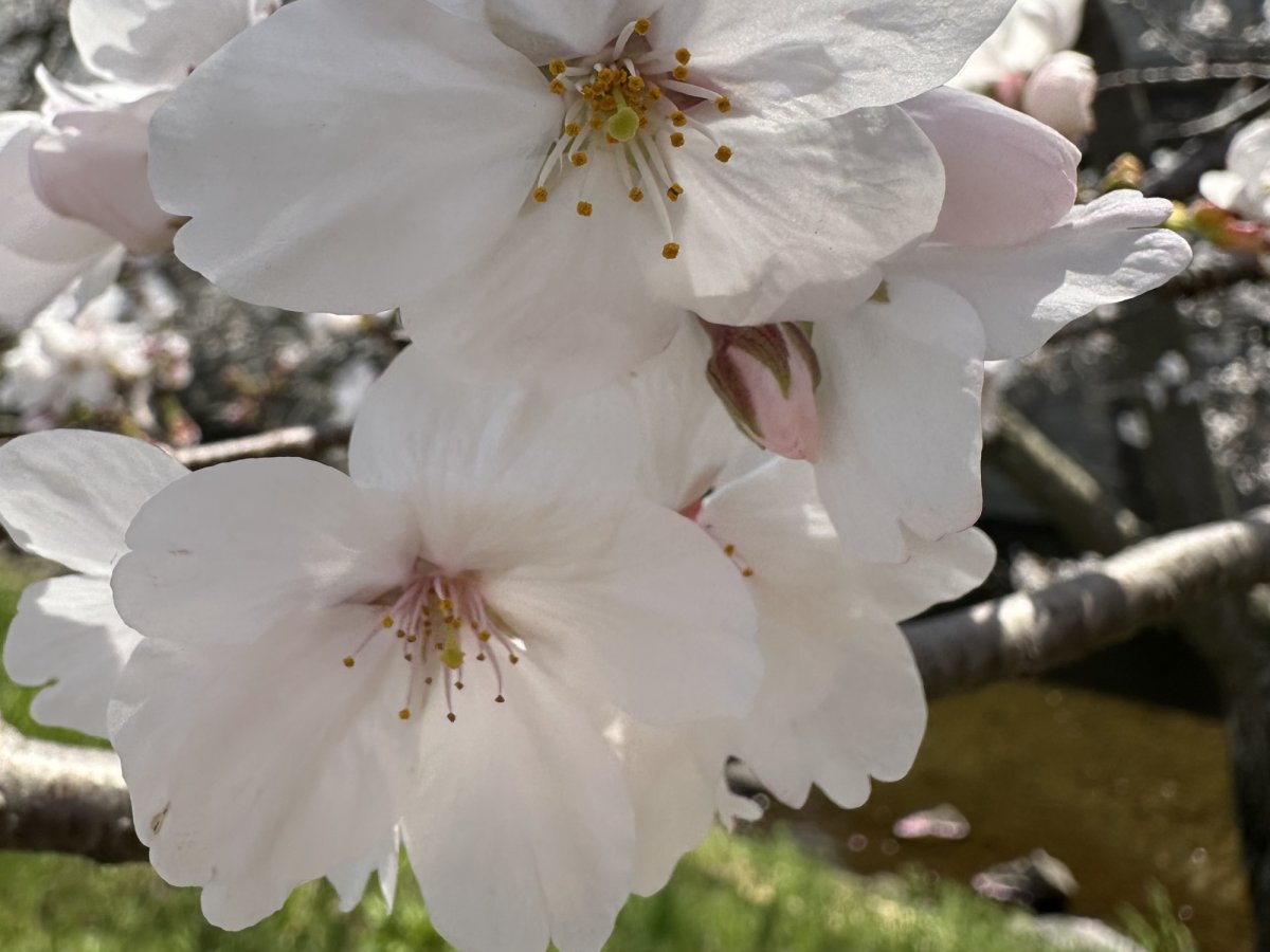日本で最も親しまれる代表的な桜で、赤坂泉公園でも陽光桜に続いて満開を迎える主役です。 咲き始めは淡い紅色、満開に近づくと白に変わり、泉の景色をやわらかく包み込みます。