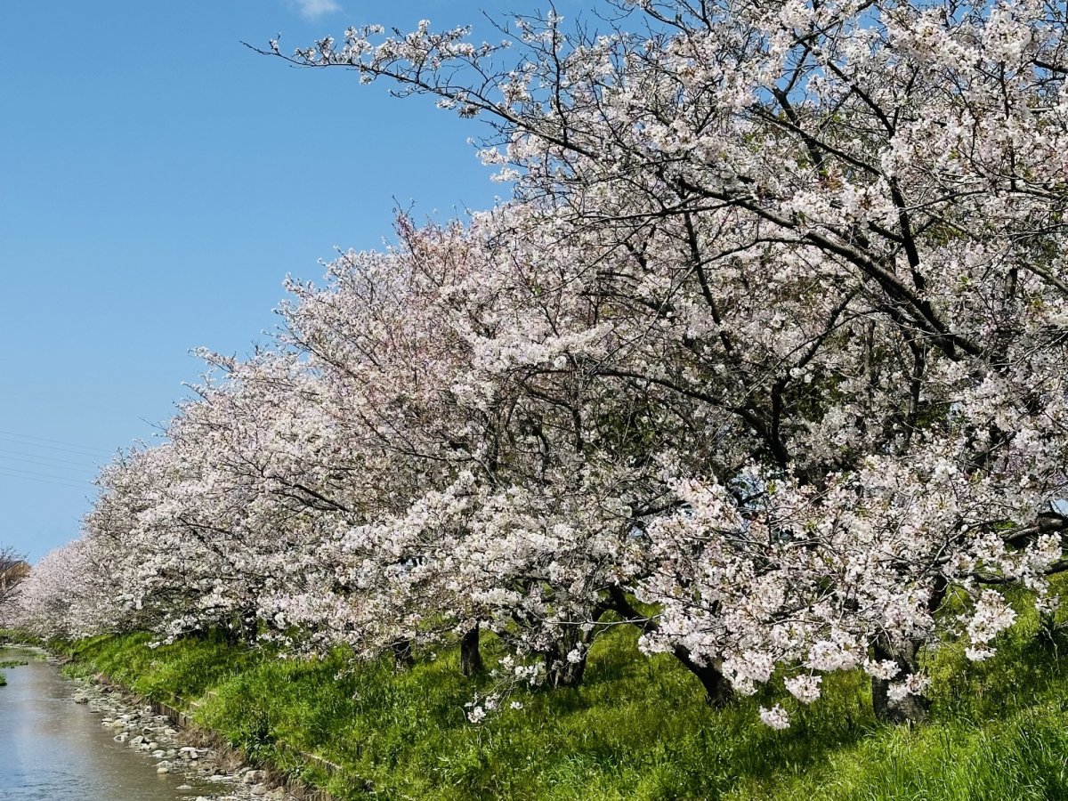 赤坂泉公園が春に特に人気なのは、土手沿いに植えられた約160本の桜が、見頃をずらして咲くためです。 まず「陽光桜」約90本が濃いピンク色で公園を彩り、その後に「ソメイヨシノ」約70本が満開を迎えます。