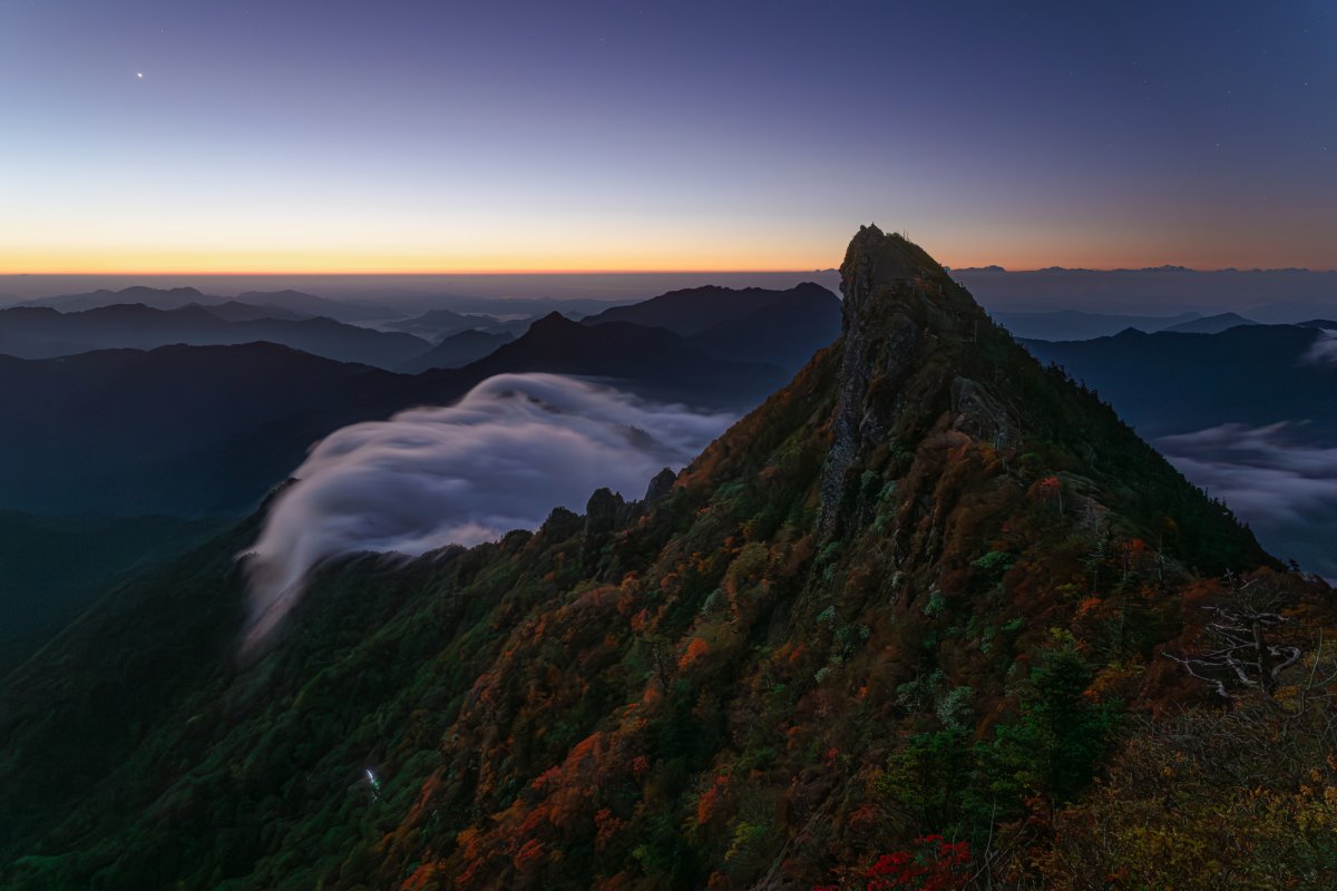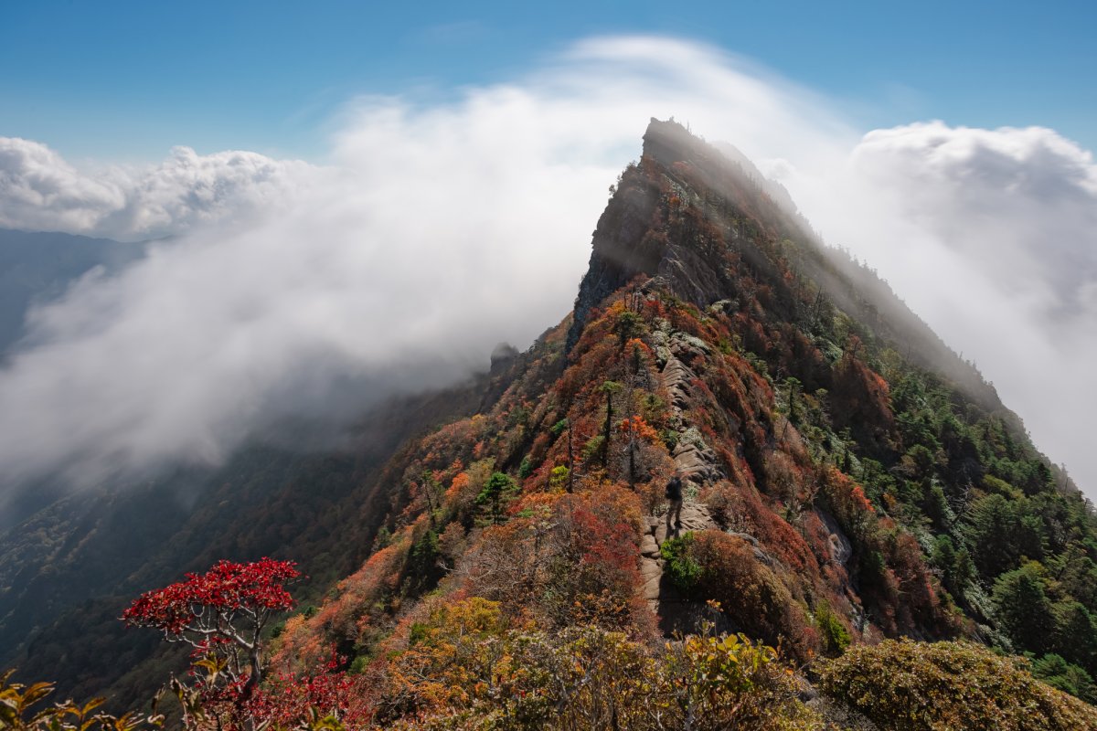 ・10月上旬〜中旬:山頂(天狗岳・弥山)付近から色づき始めます。