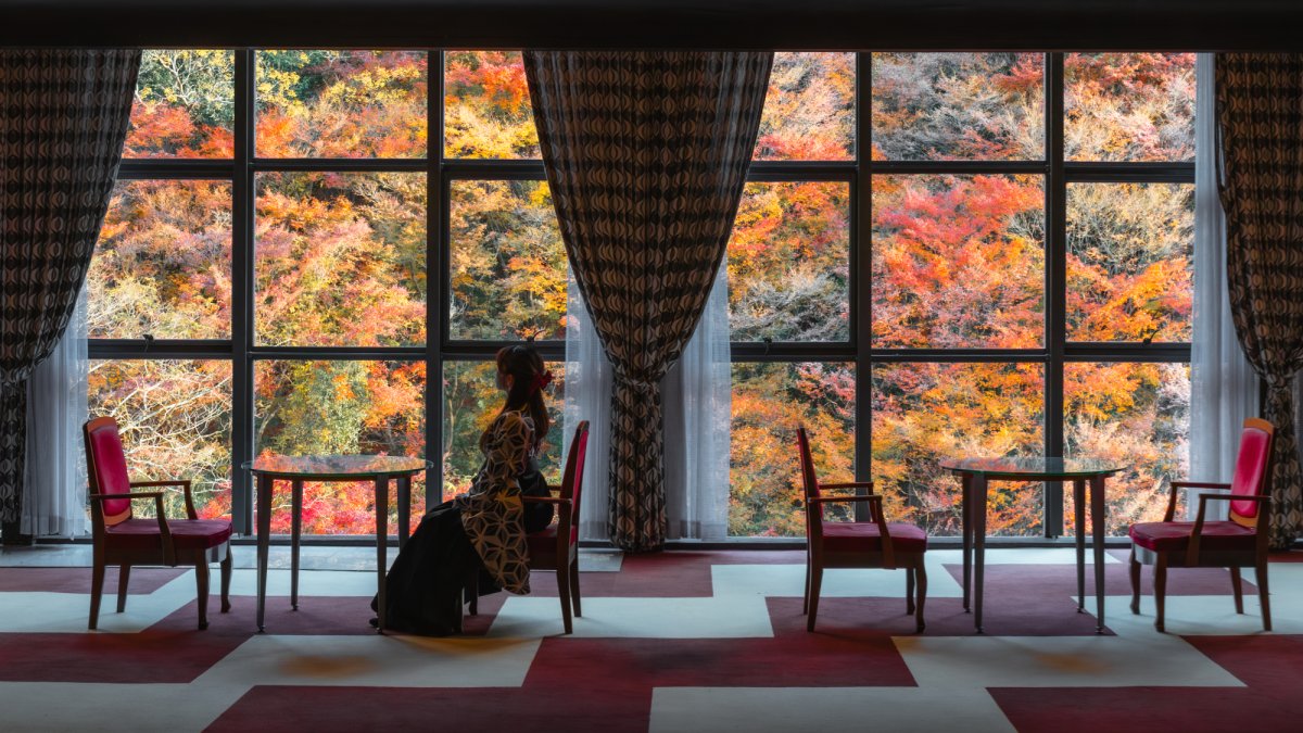 ・②【松山市】奥道後 壱湯の守|絶景の紅葉空間と足湯