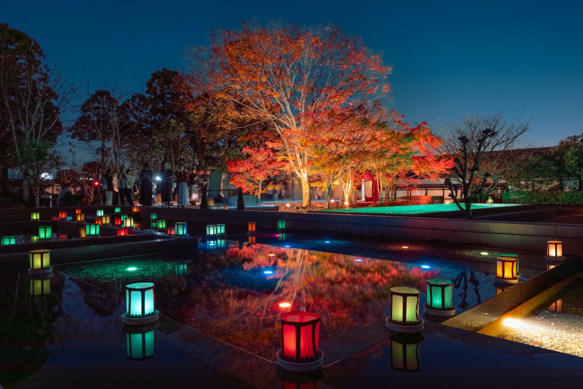 ・⑩【松山市】松山城二之丸史跡庭園|夜の庭園を彩る幻想ライトアップ