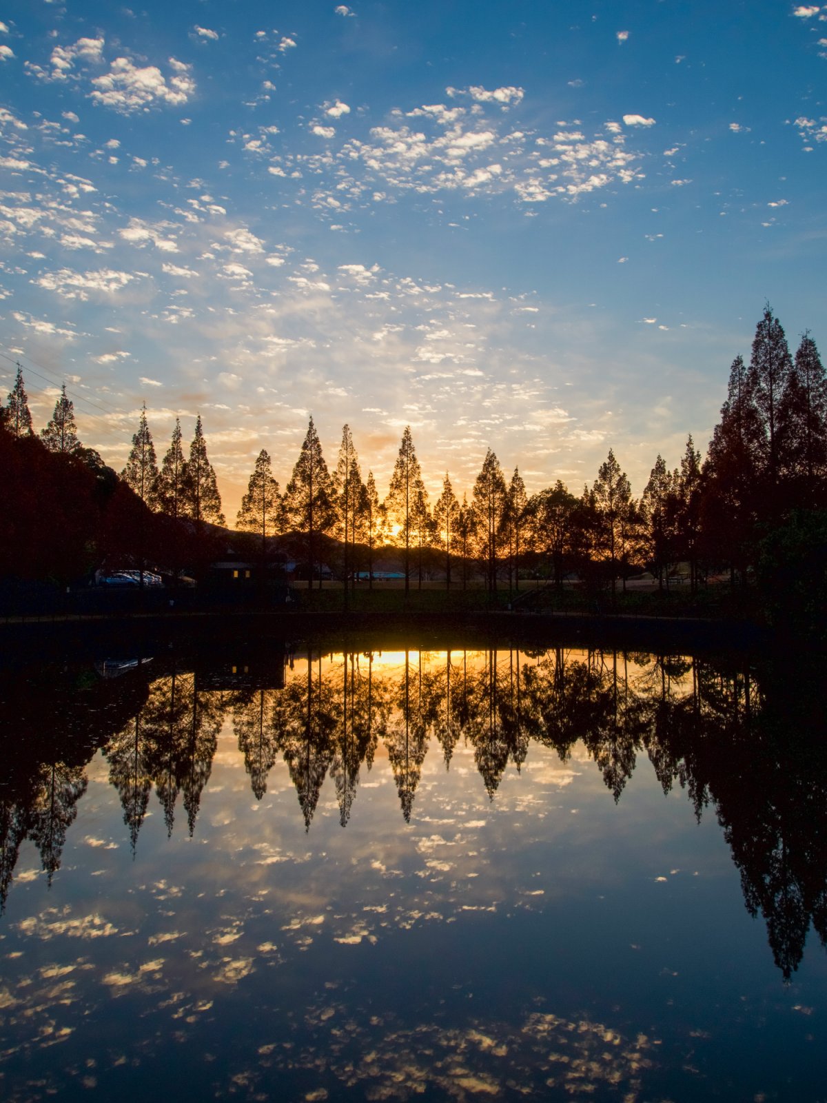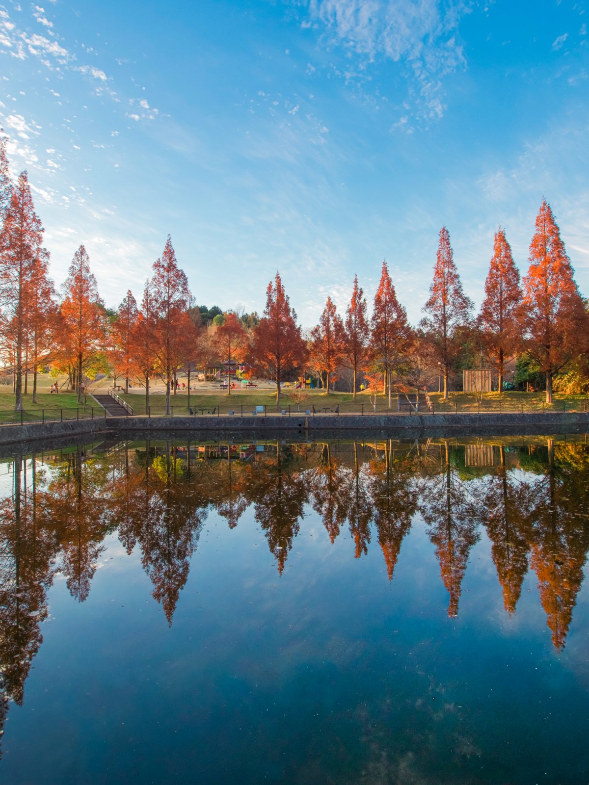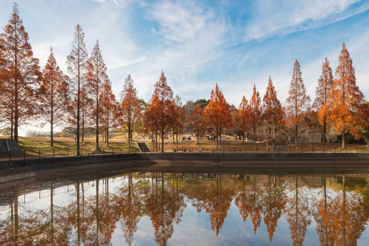 ・⑭【今治市】藤山健康文化公園|水鏡に映るメタセコイアの絶景