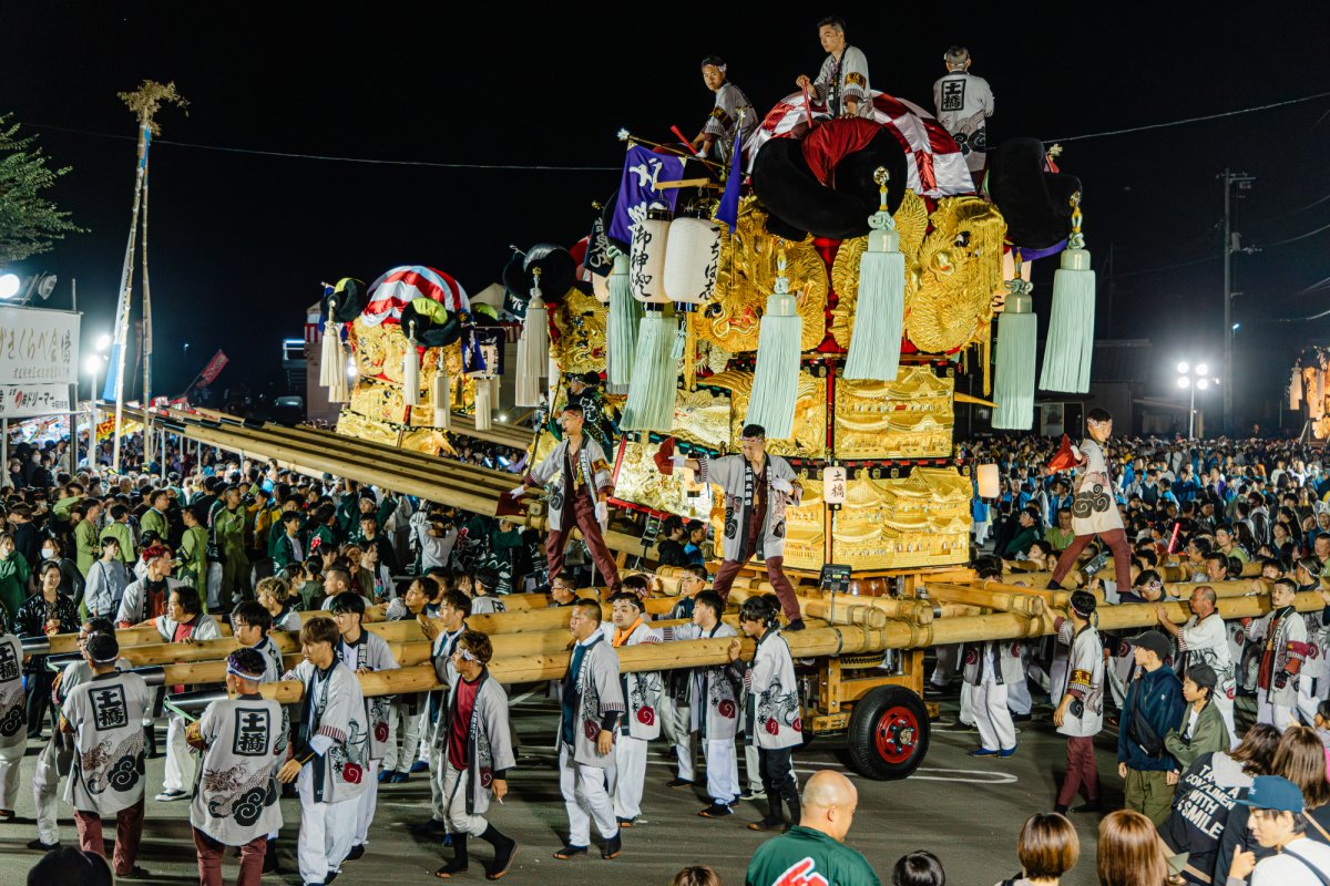 2つ目の「フレッシュバリュー 大生院店」をご紹介します。こちらは10台を超える勢いのある寄せ太鼓が有名で、会場は夕方以降にもかかわらず見物客で溢れかえっています。この寄せ太鼓を見るために訪れる人も少なくないでしょう。熱気溢れる差し上げを見たい方にはおすすめのスポットです。
