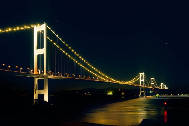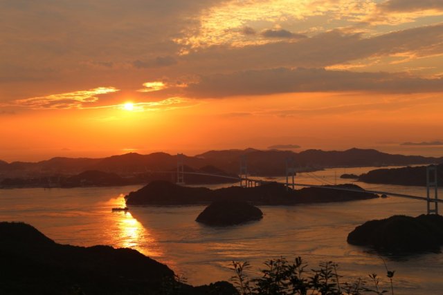 来島海峡大橋のたもとにあるサイクリングの出発点。潮風を全身に受けながら、橋の上から瀬戸内海の絶景が望むことができる。サンライズ糸山に隣接する中央レンタサイクルターミナルで自転車を借り、世界でもここだけの海の道のサイクリングを楽しめば、爽やかな心地よさから時間が経っているのも忘れてしまうほど。また、宿泊施設も併設され、しまなみ海道観光の拠点とすることができる。宿泊部屋の窓から眺める来島海峡大橋は、ただただ圧巻で橋がライトアップされる日には、夜の瀬戸内海が美しく彩られる。