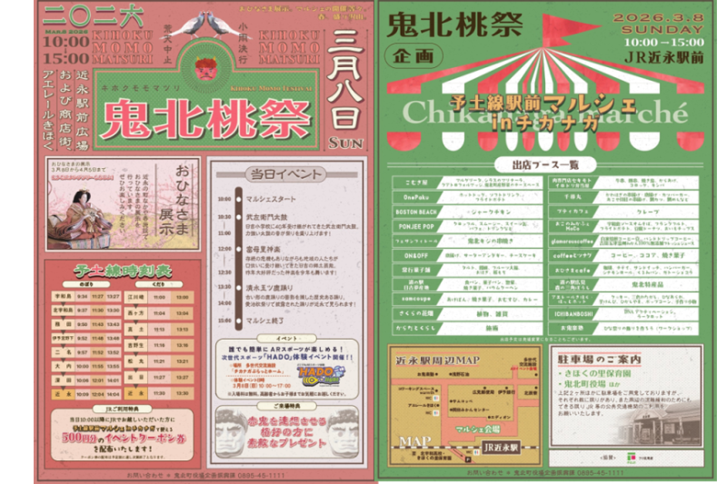 近永駅では、鬼北町の人気イベント「桃祭り」と連携開催!太鼓や神楽など伝統文化を見ることができるステージイベントを予定しています。
