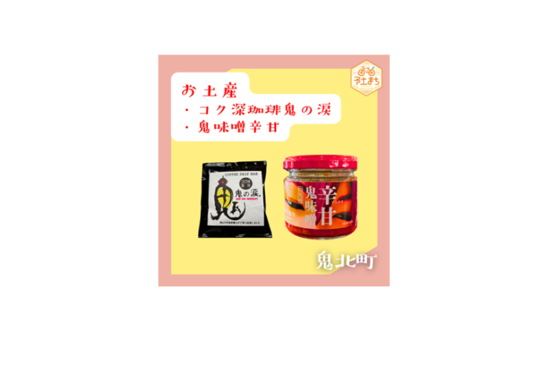 参加者の皆さんには、鬼にちなんだ鬼北町のお土産「コク深珈琲鬼の涙」と「鬼味噌辛甘」をプレゼントします♪