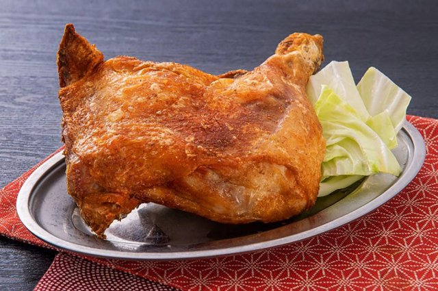 ガーリックパウダーなどで下味を付けた、ひな鳥の骨つきモモ肉を油で揚げた豪快グルメ。表面はパリパリ、中はやわらかくてジューシーに仕上げています。四国の中央部北に位置する四国中央市では、数多くの店が各店こだわりの「揚げ足鳥」を提供しています。