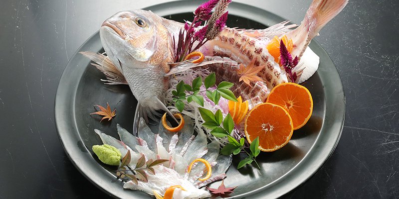 愛媛をPRするためにみかんの皮をエサにした「みかん鯛」。今では愛媛ブランド魚として知られるようになりました。みかんの搾りかすを混ぜたエサを与えて育てた養殖鯛は鮮度保持に優れ、臭みが少ないのが特徴。食べるとほのかに柑橘系の香りがすると魚が苦手な人にも好評です。刺身、カルパッチョなどの生食のほか、ムニエル、煮付けなどにもおすすめです。