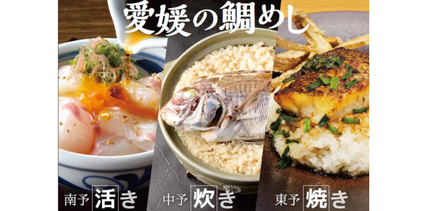 愛媛の鯛めしは、南予の「活き」鯛めし、中予の「炊き」鯛めし、そして、東予の「焼き」鯛めし!