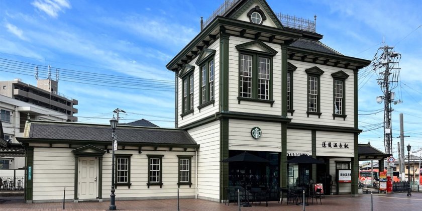 一通り楽しんだら、道後温泉駅に戻ります。この駅舎は一棟まるごとスターバックスになっていて、明治の洋風建築と内装になっているのも道後の豆知識です!