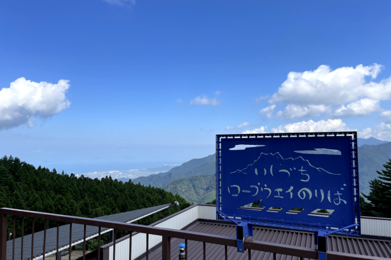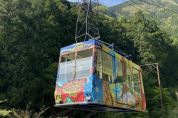 西条市から石鎚山への登山ルートにあるロープウェイ。標高455mの山麓下谷駅から標高1300mの山頂成就駅まで、所要時間約8分の空の旅が楽しめる。切り立った山肌を、ぐんぐん登ってゆくロープウェイから望む雄大な景色と、下谷駅と成就駅との気温差に驚かされる。ハイキングに最適な遊歩道やスキー場、360度の大パノラマが広がる展望台などが整備されているため、手軽に登山を楽しめるスポットとなっている。