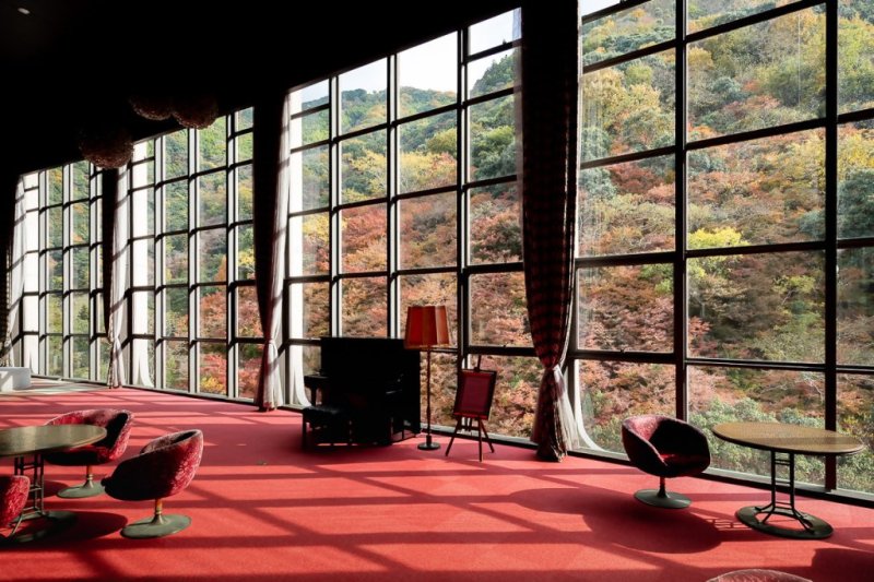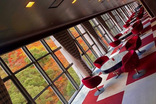 さらに、紅葉の時期は、ロビーの大きな窓から圧巻の絶景を堪能できる。(宿泊者・日帰りプラン利用者限定。)