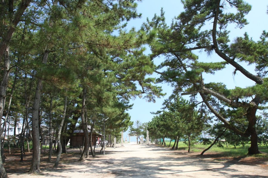 日本の白砂青松100選に選ばれ、国の名勝地にも指定されている景勝地。11ヘクタールの広大な敷地には、約2500本もの老松に覆われた浜辺を散策できる散歩道や、菅原道真ゆかりの伝説が残る綱敷天満神社などがある。受験シーズンになると大勢の受験生が合格祈願の参拝に神社を訪れる。また、梅の名所としても知られ、春になると梅園に白やピンクの可憐な花が咲き誇り、夏には多くの海水浴客で海岸が賑わうなど、四季折々の自然を堪能できる歴史と風情溢れる場となっている。