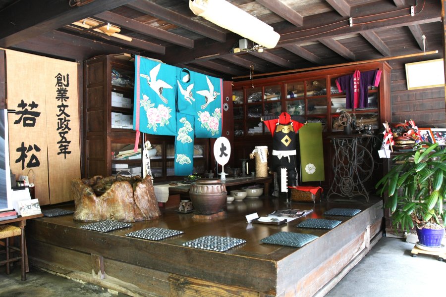 漁業や商業で栄えた八幡浜市の中心部にある文政5年(1822年)創業の老舗染物店。江戸時代末期に建てられた店の前は当時の八幡浜のメインストリートであり、店のすぐ裏は海が迫っていたと言われている。昔ながらの製法で手製の道具を使って作られる染物は同じものが一つとしてない一点一点がオリジナル品。手ぬぐいや信玄袋など小物の販売もしており、気軽に伝統工芸を楽しむことができる。