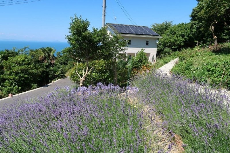 大洲市長浜町黒田にある「クロンタヒルズ」で栽培されたラベンダーを使って作るラベンダーウォーター、ハーブの香りあふれる入浴に使うバスタイムを手作りできる。女性専用のゲストルームもあり宿泊可能(Airbnbで予約可能)