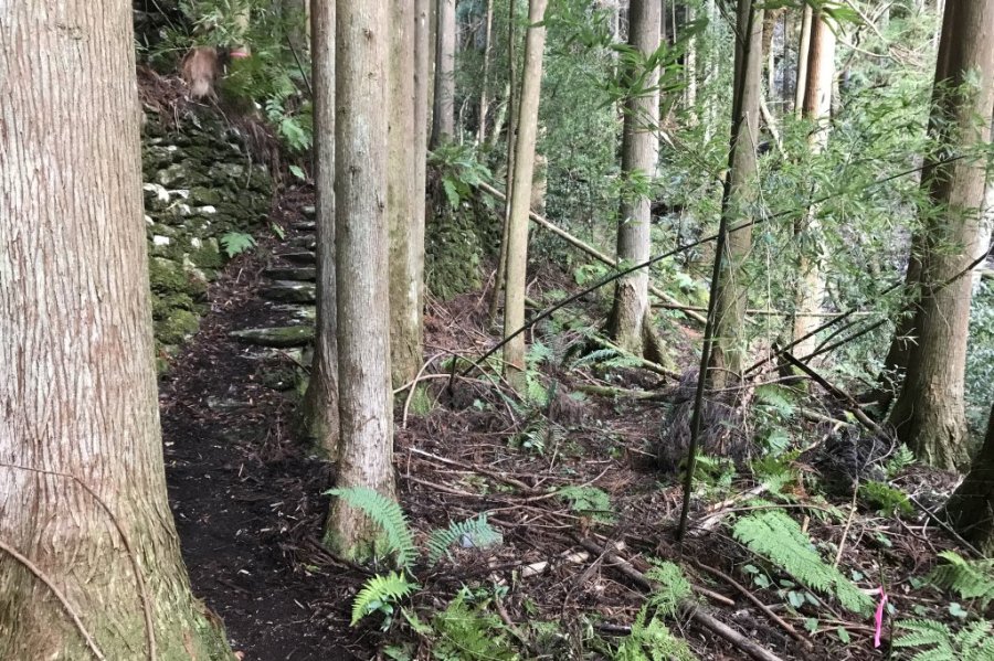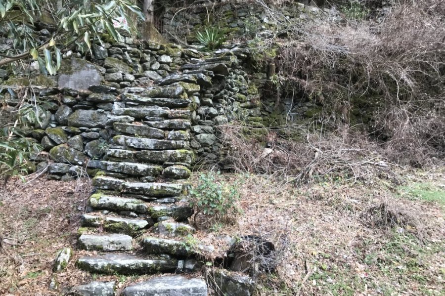 伊予西条駅からバスを乗り継ぎ、石鎚山麓として旧集落のあった東之川に位置する「おたるの滝」は、西条市名水・名木50選にも選ばれている秘境にある滝です。東之川は、山々に囲まれた集落跡となっており、現在は石段や石垣が苔生している趣のあるスポットです。