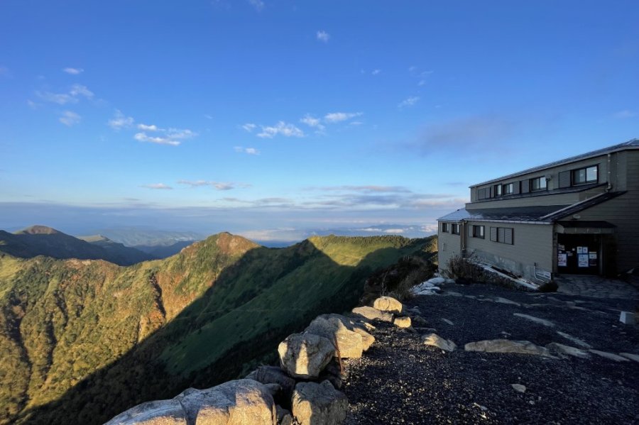 山荘は石鎚神社の関係施設として運営されており、山頂に鎮座する奥宮への参拝者や、石鎚山を目指す登山者の拠り所となっています。天候に恵まれた日には、四国山地の雄大な山並みや瀬戸内海を望む景色が広がり、夕焼けや満天の星空、そしてご来光など、山頂ならではの特別な時間を体験することができます。